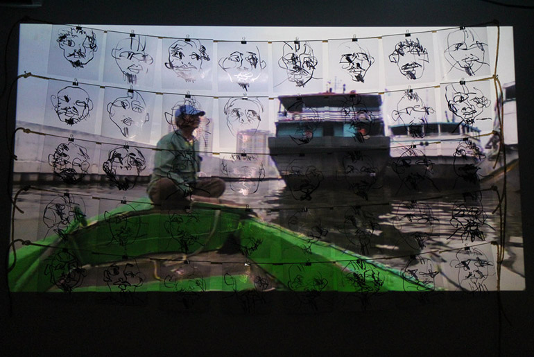 Another video showing his examination at Sunda Kelapa was projected on a drawing portrait. At the same time the journey of his ‘air navigation’ using pigeons started and another purpose was testing the theory whether pigeon will fly back to its initial home after undergoing such long journey. Want to see the rest of his observation unfolds? Then you should come to his exhibition “The Sky Is Portable” that is still happening now at SPACE: Gallery + Workshop. More info of the artist and his exhibition here.