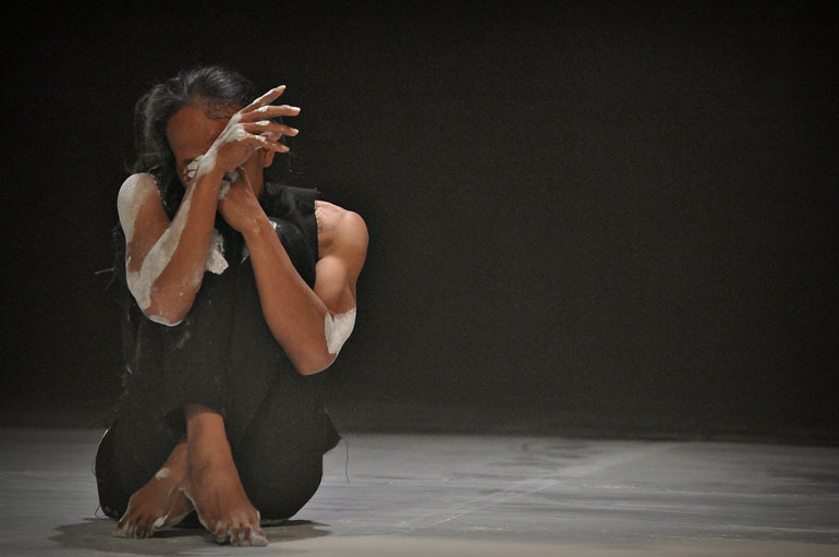 An Intense Dance Performance on “Vertical Recall” by Melati Suryodarmo at Helatari Salihara