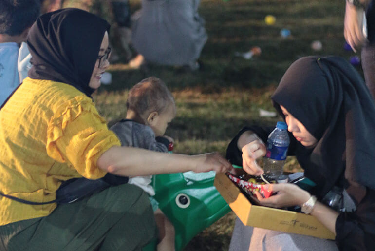 We arrived at the venue just in time for Moonlight Dinner Session at 7PM and we could see several activities like Brand Activation from Dinner (Indofood), band performance, music selectors and Kitchen Stage were happening. On Kitchen Stage, Chef Masbay did a little Q&A session with his expertise in cooking Western and Eastern food. He cooked up a dish made out of beef and mutton meat with spices, stir fried on a pan with the aroma that could be smelled from the radius of 100 meters. The visitors could taste his cooking after it was being served, and to accompany them to enjoy the food, vinyl selectors played music on the background. On another stage, Curly & Me played their acoustic pop songs for the audience and the crowd seemed to get bigger as the night grew darker. We strolled around Arcamanik Drive Range to see what else we could enjoy at the site. Movie Air happened to be played, it is a program in which people could watch selected indie movies in an open air while stuffing their mouths with great food provided by the tenants. We watched a couple of movies, while waiting our food from nearby food truck.