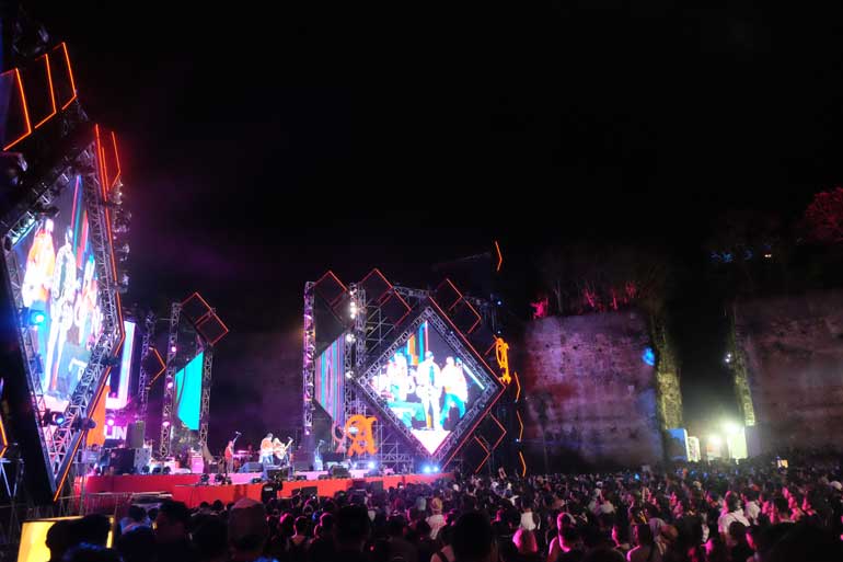 To ascend to another stages, we had to climb up the stairs which have been beautifully decorated and drawn by the murals from Muklay, Iwe Ramadhan, and Abenk Alter. The three of them joined forces to create two huge drawings which you could see in its entirely from the ground. Iwe Ramadhan was last year’s winner of Go Ahead Challenge on Visual Art category. On A Stage, the set was opened by Scared of Bums, and Jionara who would collaborate with Alexa the next day. The Adams brought nostalgia with their oldies songs and the setting sun was the perfect companion to their sweet tunes. Bali’s own psychedelic grunge band, Navicula commenced the stage followed by a special collaboration project called “United We Loud Project”. Nikita Dompas was the mastermind behind this project and he invited Danilla Riyadi, Candil, Shae, Aqi “Alexa”, Monita Tahalea, Fadli Musikimia and Ari Lasso on a stage together. This time Nikita dared these vocalists to come out of their comfort zones by bringing songs they do not usually do. Classic Indonesian songs like “Nada Kasih” by Fariz RM, “Pemuda” by Chasiero, “Pertama” by Reza Artamevia as well as “Begadang” by Rhoma Irama were re-arranged and performed in these vocalists’ own styles. They had to bring their own take to perform songs like “Toxic” by Britney Spears or “I Feel It Coming” by The Weeknd and Daft Punk. Some lyrics were missing but it was all tolerable since they sang it well.