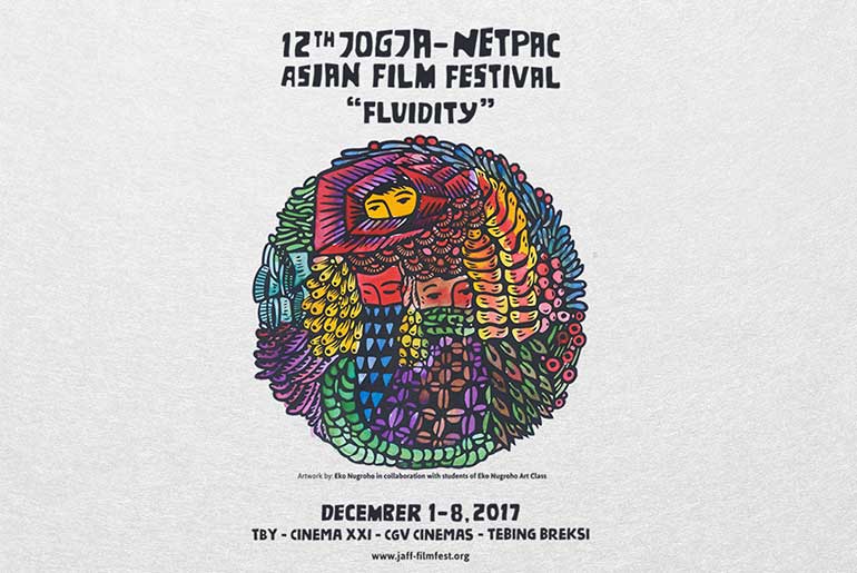 Fluidity expresses how cinema becomes a flexible medium for filmmakers to incorporate other fields of arts. The fusion between these two, and cinema as another form of art do not always result in a certainty. Cinema is an ever-changing organism that keeps growing and expanding, in response to technological changes and socio-political circumstances that are happening in the world. To further apply the theme to the festival, JAFF aims to collaborate with other artists in various disciplines like music composer, costume designer as well as visual artist. This year’s logo for JAFF was created by senior artist, Eko Nugroho in collaboration with the students of Eko Nugroho Art Class. His experience in Indonesia’s modern contemporary art and for the official artwork of 12th JAFF, he stays true to his cartoon style artwork. For more information regarding the festival and the following schedules of screening, discussion, and workshop, stay tuned to website.