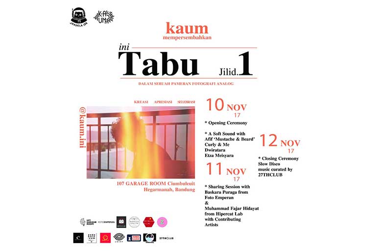 Bandung will always a place where talented individuals or collectives cook up great ideas, and now an analog photography exhibition called “Tabu Vol.1” will be held starting from today until Sunday 12 November 2017. The exhibition is initiated by an independent creative collective called Kaum and fully supported by Jendela Ide, an alternative art platform which was established since 1995. This time Kaum try to create a movement among local artists in Bandung by presenting a series of events that they could participate in. With a more variation of programs and contents, hopefully it will become a sustainable platform for any art workers in the city no matter what background field they have. “Tabu” is a concept that they try to emulate for their first ever program. “Tabu” or taboo is often considered as behavior, attitude, statement or anything else that is considered sacred and not supposed to be performed, which is different in any custom or culture. In Indonesia’s custom, nakedness is one of the most taboo concept and nakedness in this concept is meant to bring an honest, raw, natural experience in the program.