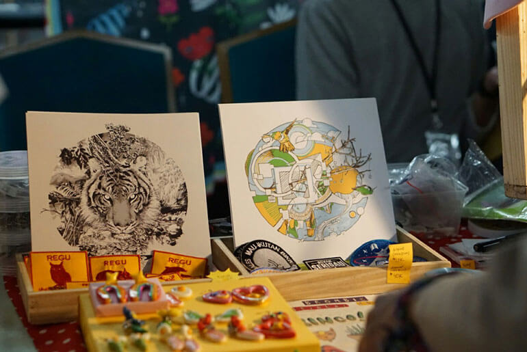 JAKARTA – Para pecinta seni di ibukota dimanjakan oleh sebuah gelaran seni tahunan yang diadakan oleh Catalyst Art. Seri ke-8 dari Art Market Jakarta mengambil konsep yang kurang lebih sama dengan edisi sebelumnya, yakni menghadirkan bazaar karya seni dan produk kreatif yang berbasis ilustrasi. Selama tiga hari dari tanggal 8 – 10 Desember 2017 di Kuningan City Mall, sebanyak 3.000 lebih pengunjung memadati berbagai booth dan program yang telah disusun oleh panitia acara. Tim The Display juga menyempatkan diri hadir dan menikmati berbagai produk kreatif yang dijajakan oleh para seniman dan creative micro-preneur lainnya. Salah satu partisipan dalam gelaran kali ini adalah seniman Resatio yang berkolaborasi dengan 6 seniman lain yakni Elsadiora, Fajar Domingo, Grace Joetama, Ika Vantiani, Karin Josephine, dan Piganta untuk membuat suatu karya seni kolase. “Berkesan karena banyak orang yang sengaja dateng ke AMJ untuk ngobrol secara personal dengan saya,” ungkap Resatio ketika ditanya kesan atas acara ini. Selain bazaar, terdapat pula banyak workshop yang dapat diikuti oleh umum sehingga Art Market Jakarta ke-8 tidak pernah sepi oleh pengunjung.