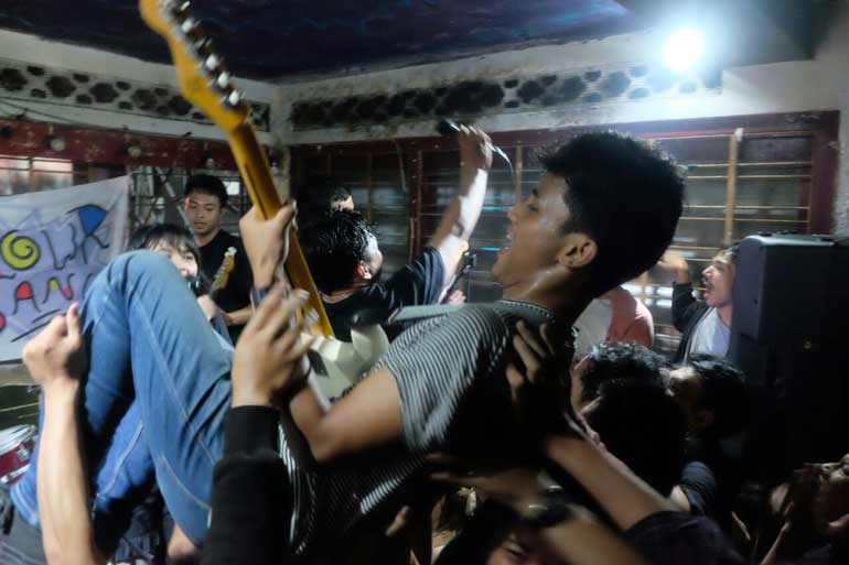 Malang has always become a nice host for bands who are on tour and the latest crew who got to taste the hospitality of the city was Kolibri Rekords. Bringing two of their rosters on the road, Grrrl Gang and Flowr Pit, the tour titled “Flowr Gang” visited their last stop on 25 February 2018. Taking place at Houtenhand Public House, the Mecca for underground gigs in the city, the tour showcase was held in conjunction with Heartfelt #3. The collective gig initiated by independent event makers from Malang, presented five bands in total. There were Head Head, Much, Dizzyhead, Flowr Pit and Grrrl Gang that took turn to rock the humble stage of Houtenhand’s second floor.