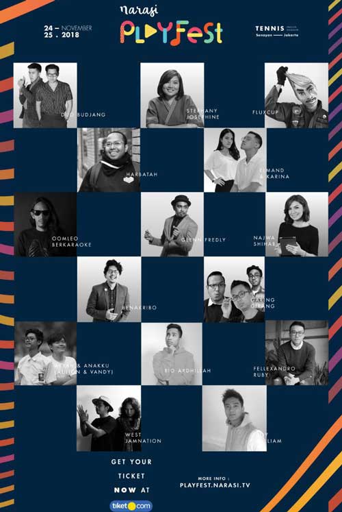 Najwa Shihab, jurnalis sekaligus founder Narasi TV menuturkan bahwa Playfest 2018 diselenggarakan sejalan dengan keyakinannya akan 3C, yaitu Content, Collaboration dan Community. “Kami mempersiapkan Playfest 2018 sebagai melting pot konten-konten baik, wadah bagi para kreator untuk berkolaborasi dan tempat bermulanya movement komunitas. Semua itu siap untuk memberikan pengalaman langsung kepada para penikmat dan pembuat konten serta penyuka musik tanah air.” Daripada kamu mager dan dijejali konten-konten negatif di gadgetmu, lebih baik datang ke acara ini ya kan? Untuk informasi lebih lanjut, bisa dilihat di Instagram @narasi.tv atau @eventnarasi.