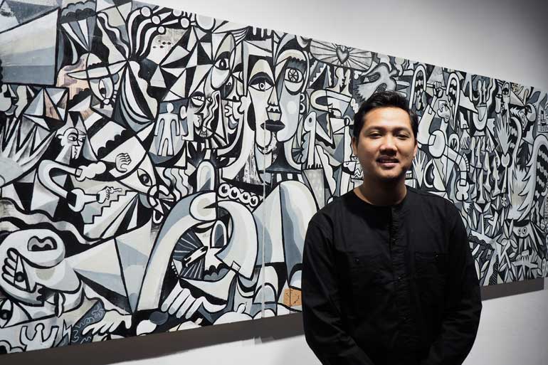 JAKARTA (12/14) – Most people in Indonesia have known Abenk Alter as a musician. Having worked in the entertainment industry for so long, Abenk Alter recently involved himself in art. He presents a solo exhibition called “Interplay” at RUCI Artspace to showcase his duality. What he meant as duality is two identities which reside within himself, an identity of Abenk Alter as a public figure, and a true identity of himself as a human. These two seemingly similar but different identities of oneself are the theme that Abenk is going to explore more on his latest solo exhibition. Through a media preview that was held a day prior to the opening, we had a chance to interview the artists to know more about his motivation in creating the pieces that are curated by Mia Maria. Mia Maria said that Abenk’s style has caught her attention, especially as a pop urban culture’s enthusiast. His style of combining bold lines with colors, that could form an abstract or apparent object has a strong magnet that could pull the attention of the onlookers.