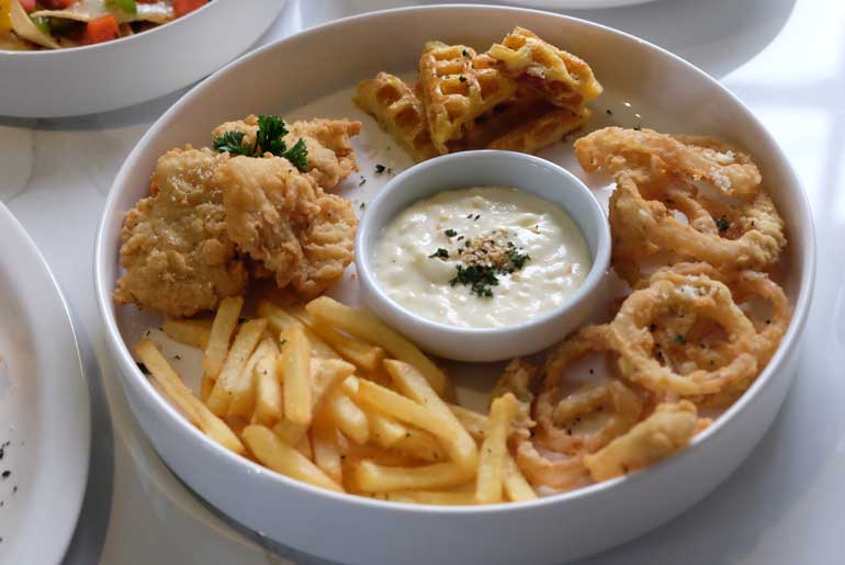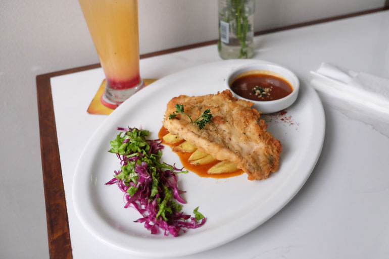 Masakan Inggris klasik Fish O’ Chips alias fish and chips juga tersedia di PUBLIC. dengan keunikan di kentang gorengnya yang dipotong tipis dan digoreng kering. Ikan goreng tepung ini disajikan bersama saus tar-tar yang asam dan gurih. Kalau kebetulan kamu sedang bingung cari menu sarapan di tempat ini, menu Egg Benedict bisa jadi pilihan. Roti gandum yang dipanggang disajikan dengan telur yang direbus setengah matang dan sayuran hijau. Seandainya saja plting dari menu ini dibuat seidkit lebih menarik, maka Egg Benedit bisa jadi lebih Instagrammable. Untuk pilihan minuman non-alkohol, ada Fruity Sunrise yang berwarna cerah seperti matahari terbit atau Mango Lychee Cobbler. Minuman-minuman beralkohol juga tersedia di tempat ini dan tiap hari kamu bisa menikmati sajian musik dari DJ yang memainkan tembang-tembang pilihan yang berbeda tiap harinya. Fasilitas yang cukup lengkap dan pencahayaan yang cukup temaram di PUBLIC. bisa membuatmu betah nongkrong lama-lama.