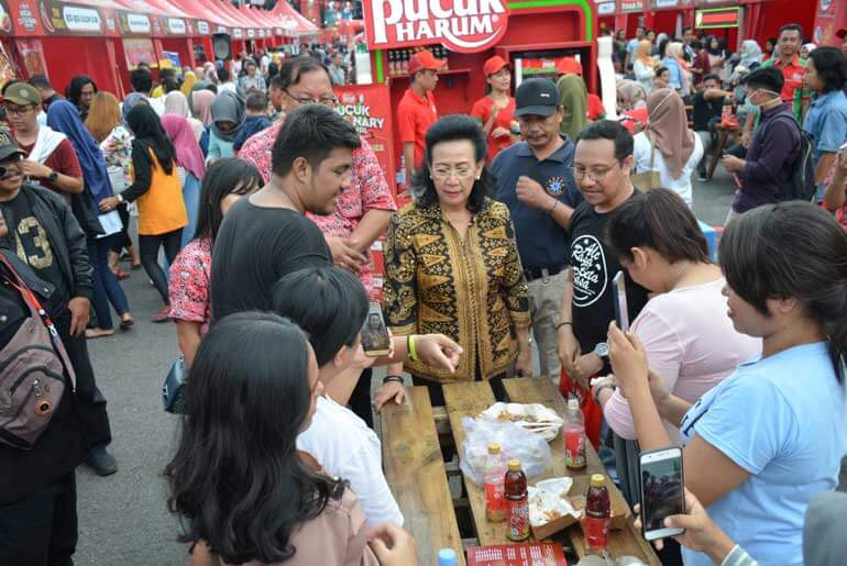 YOGYAKARTA (31/3) – Teriknya matahari hingga derasnya hujan yang mengguyur selama dua hari gelaran Pucuk Coolinary Festival 2019 di Yogyakarta tidak menghentikan semangat para foodies untuk menjejali Lapangan Parkir Stadion Mandala Krida. Sekitar 94.000 lebih pengunjung mulai dari dewasa, anak-anak, remaja, hingga lansia memadati 3 zona kuliner yakni Manis, Gurih, dan Pedas yang dipersiapkan oleh Teh Pucuk Harum. Dari 100 lebih tennant yang menawarkan berbagai sajian yang menggugah selera, olahan sate klathak terbukti jadi primadona dari para pengunjung. Sate Klathak Pak Jede menjadi salah satu tennant yang menarik perhatian pengunjung. Menempati area Zona Gurih, Sate Klathak Pak Jede tidak hanya menyajikan potongan daging kambing yang dibakar dengan gagang besi di atas arang panas. Tennant ini juga menawarkan olahan kambing khas Yogyakarta seperti tengkleng, tongseng, dan gule kambing.