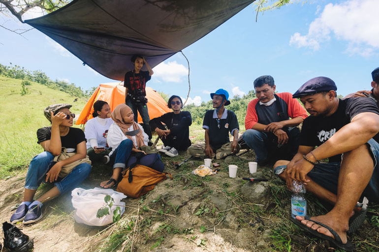 Sebagai upaya menjalin hubungan baik dengan masyarakat, Wisnu dan pengurus Gulung Tukar juga mengajak warga serta komunitas di sekitar kawasan untuk turut serta. Salah satu komunitas yang diajak adalah Candi Dadi Learning Center. Menurut Fikri dari Candi Dadi Learning Center, masyarakat di sekitar kawasan Candi Dadi juga sedang berupaya membangun kembali kepercayaan publik pada wisata di sekitar kawasan tersebut. “Masyarakat merespon baik program ini dan ini sesuai juga dengan program-program yang akan dihidupkan kembali di daerah Candi Dadi karena ternyata kawasan ini menyimpan banyak potensi” tandasnya. “Harapannya kegiatan ini bisa menjadi pemantik bagi kegiatan-kegiatan serupa untuk mengaktivasi kembali situs-situs penting di Tulungagung. Bahwasanya untuk menciptakan ekosistem seni yang setara, dapat dimulai dari menggandeng masyarakat sebagai subjek laku seninya,” pungkas Benny dan Radatul dari Gulung Tukar. Kamu bisa menyimak aktivitas seni terbaru dari kolektif ini di rangkaian Biennale Jatim IX melalui media sosial @jatimbiennale atau @gulungtukar.