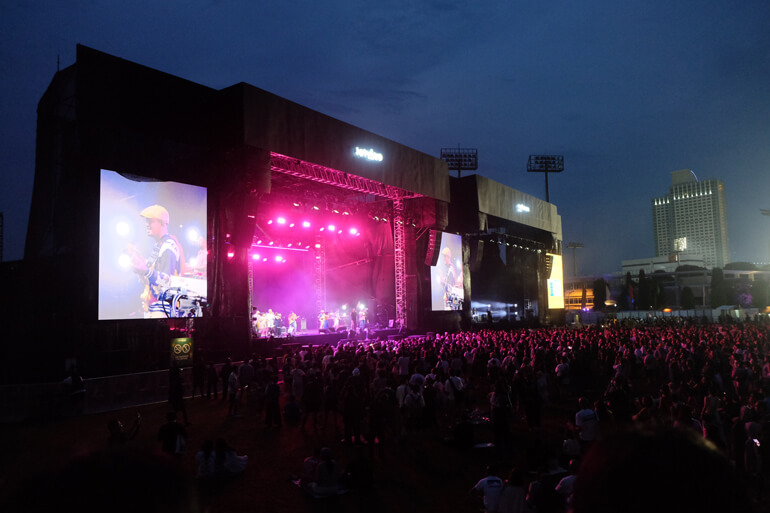 Our first attention went to a South Korean band called Silica Gel who performed an attractive set to a mostly young girls audience, albeit doing less talking due to language barrier. White Shoes and The Couples Company delighted the Lily Pad stage with their everlasting songs. They were very honored to be appointed as the curator for all the acts who performed at this particular stage and hoped that the audience could enjoy their handpicked acts as well as they do. Los Angeles’ ambient pop act Bubble Tea & Cigarettes had to perform with only two remaining members as their drummer fell ill. With this handicap, the duo delivered their performance well while they shyly greeted the visitors as if it was their first time ever performing in Jakarta. The S.I.G.I.T proved that age is just a number by performing an energetic show as the audience sang along and danced to their songs. Indie pop unit, Real Estate, greeted their fans warmly as they sang songs like “Had to Hear”, “Wonder Years” as well as “Darling” during their set. St. Vincent pulled out a theatrical set with various gimmicks to keep the audiences’ eyes and ears peeled to her stage. The singer whose real name is Annie Clark took turns playing guitar, dancing, singing and goofing around with her bandmates. She even did crowd surf while singing “New York”. DJ Daham Park who goes by his stage name YESYES played a selection of Asian songs hailing from East Asia up to the Middle East. Last, but not least, AIR’s long-awaited performance was welcomed enthusiastically, especially those who grew up with their songs in the late 90’s.